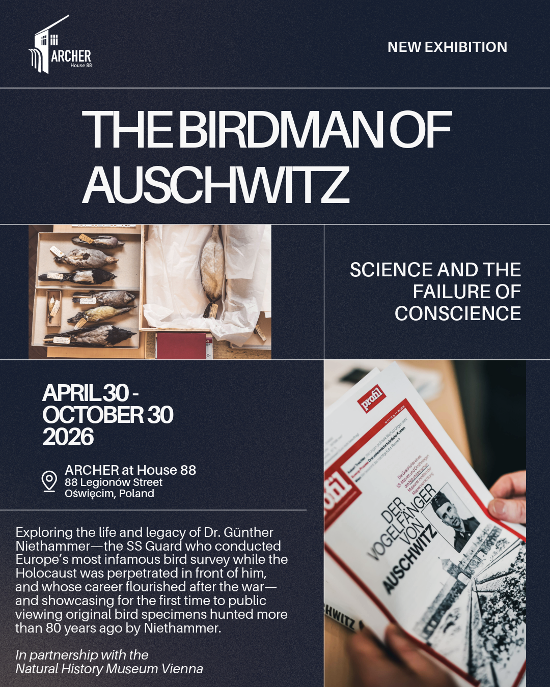 Opening to the public April 30, this landmark exhibition explores a disturbing intersection of professional ambition and moral collapse through the life of Dr. Günther Niethammer. A renowned ornithologist and Waffen-SS volunteer, Niethammer conducted extensive avian research and collected specimens while serving as a guard at Auschwitz. Featuring eight of these bird specimens on loan from the Museum of Natural History Museum— publicly displayed for the first time in 80 years — the exhibition provides a haunting physical link to the camp’s environment. These artifacts serve as a catalyst for examining how the pursuit of scientific knowledge was used to mask and compartmentalize the horrors of the Holocaust.